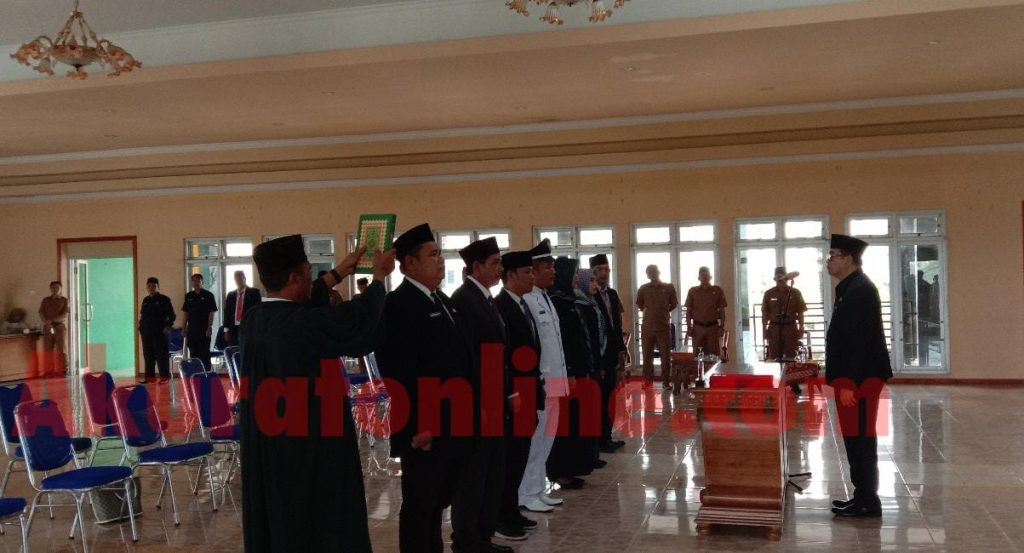 Akuratonline, LEBONG – Pemerintah Kabupaten (Pemkab) Lebong kembali menggelar pelantikan dan pengambilan sumpah jabatan terhadap pimpinan tinggi Pratama dan administrasi di lingkungan Pemkab Lebong. Selasa (12/07/21).